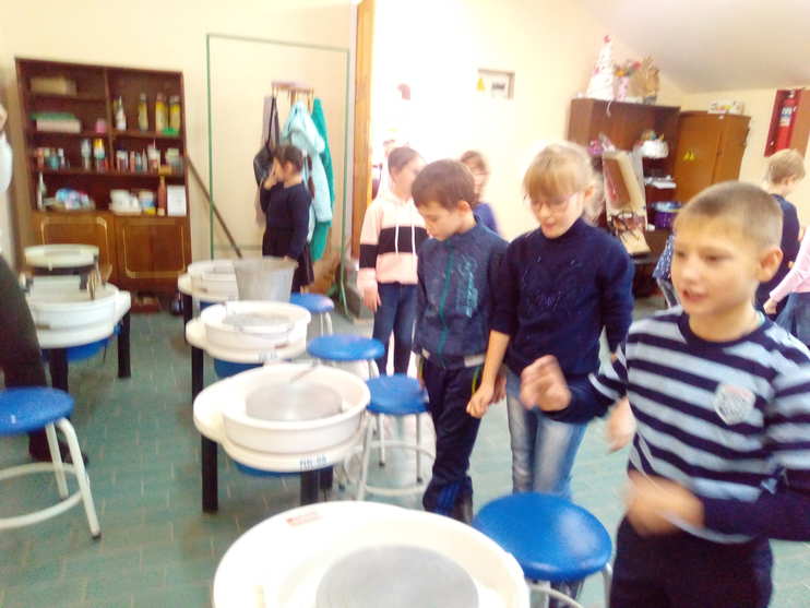 Обучающиеся класса в рамках направления «Промышленный туризм» 3 ноября посетили государственное бюджетное образовательное учреждение среднего профессионального образования Пензенской области «Спасский колледж профессиональных технологий и бизнеса». На этот раз детей встретили сразу два педагога: Юрбачева О.И. и Югалдина Н.П. Они рассказали об особенностях абашевской игрушки, показали новое оборудование: гончарные круги, печь для обжига, глинораскатный станок.