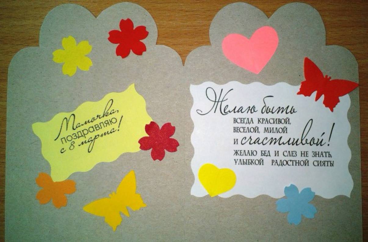 - можно дополнительно украсить открытку сердечками, бабочками и т.д.