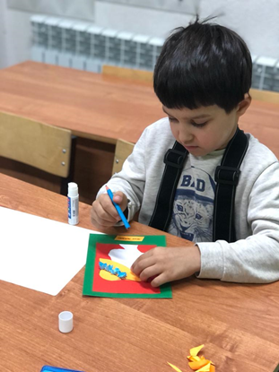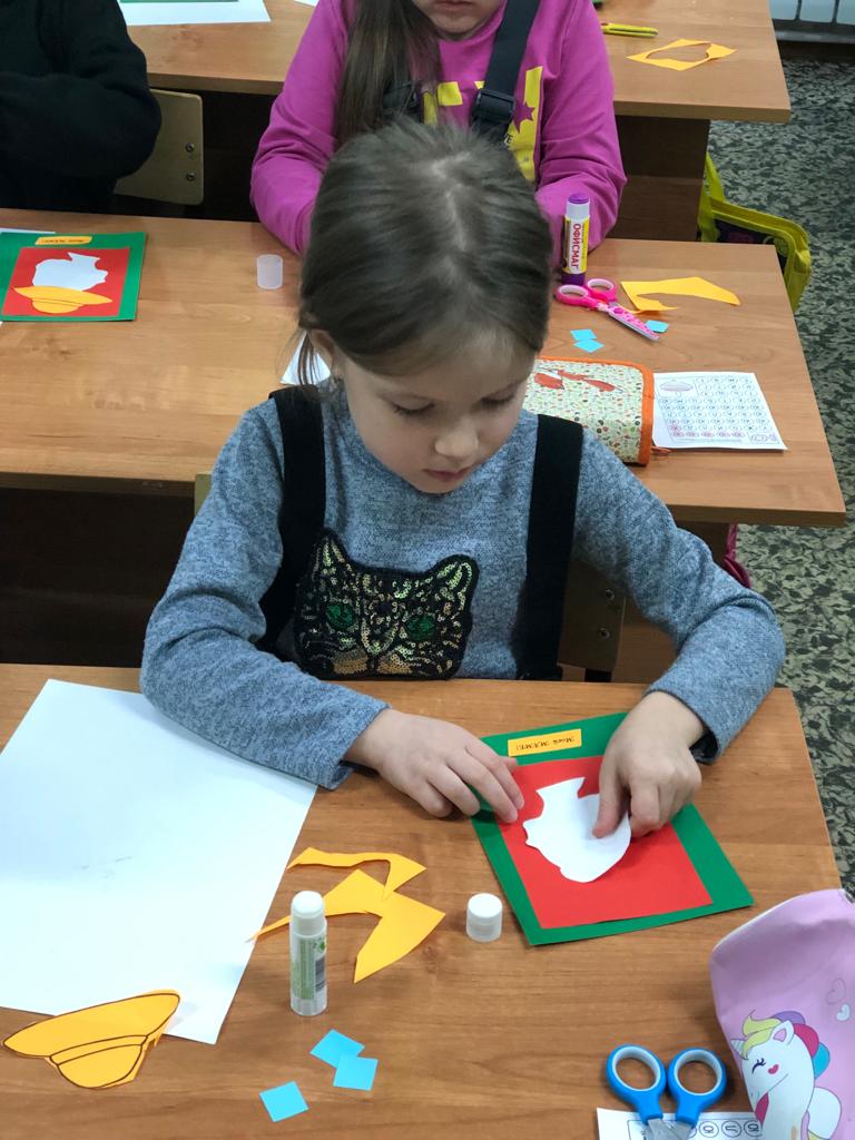 Материал и оборудование: цветной картон, цветная бумага, заготовки деталей изделия, готовое изделие, ножницы, клей карандаш, карандаши, доска.