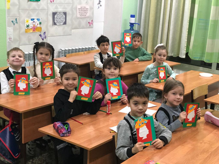 Учащиеся вместе с педагогом выполняют все этапы изготовления открытки. Педагог контролирует правильность выполнения операций, помогает тем, кто затрудняется, дает советы.