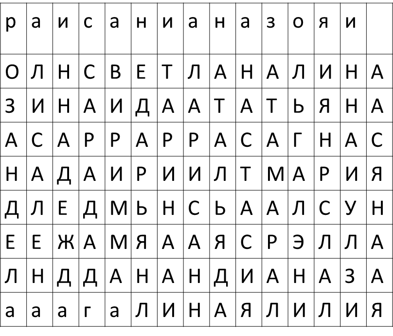 записать как можно больше женских имен. Их должно быть 35.
