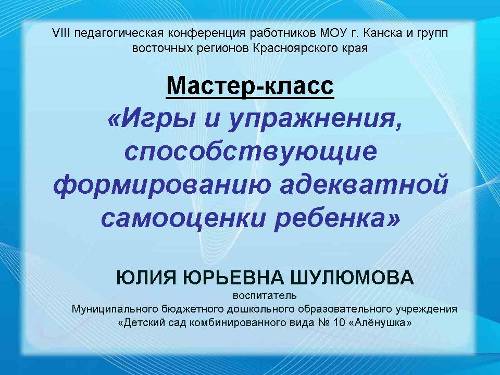 Мастер - класс «Игры и упражнения, способствующие формированию адекватной самооценки ребенка.