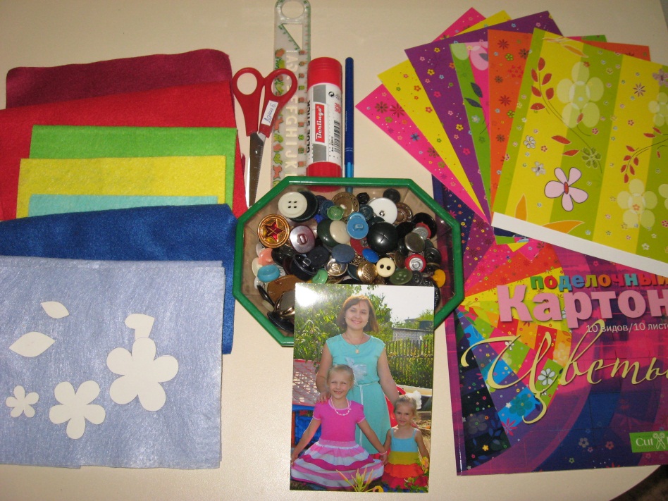 совершенствование навыков работы с картоном, фетром, пуговицами, ножницами, клеем;