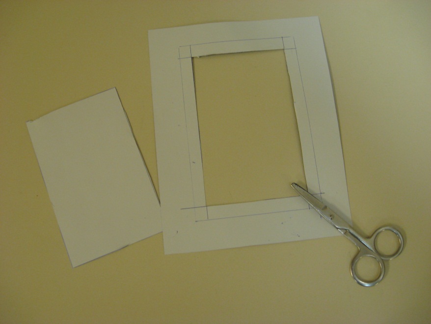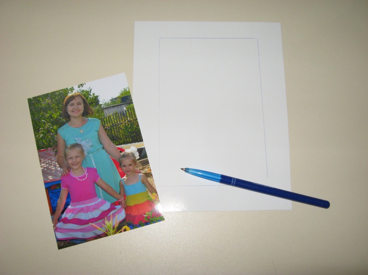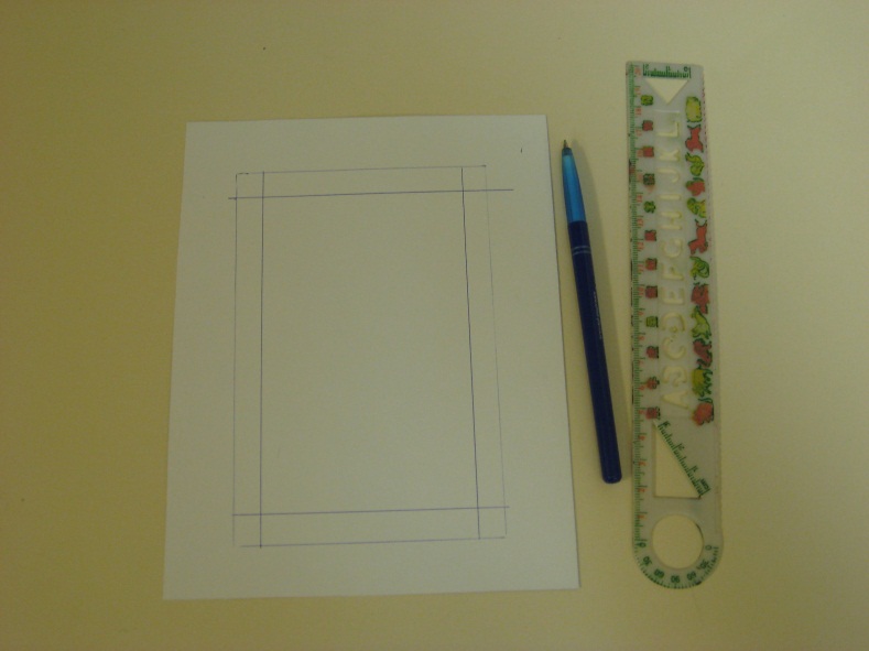 По краям обведённой рамки делаем ещё одну рамку шириной 1,5 см для приклеивания фото.