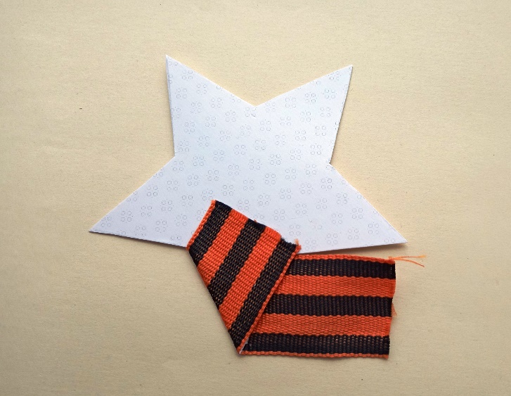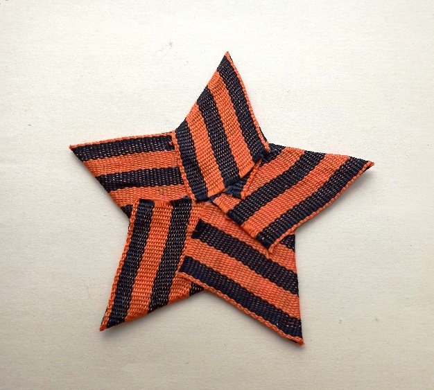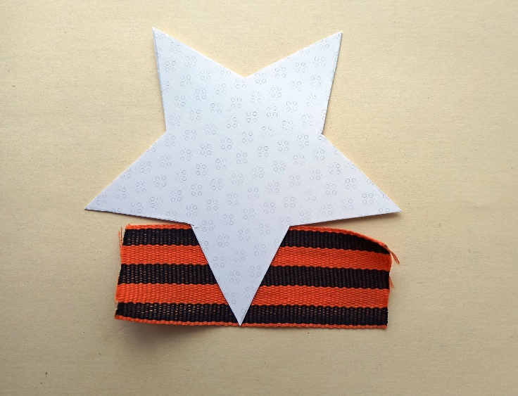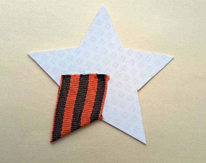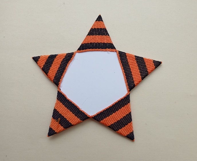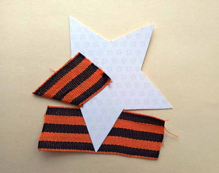 лента георгиевская (или триколор) шириной 3,2 см - 5 отрезков по 9 см для звезды;