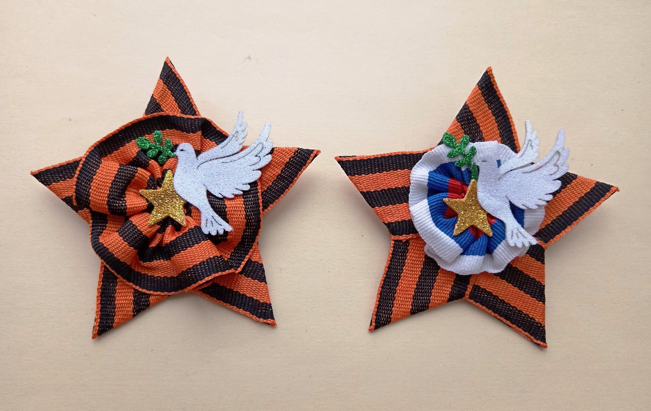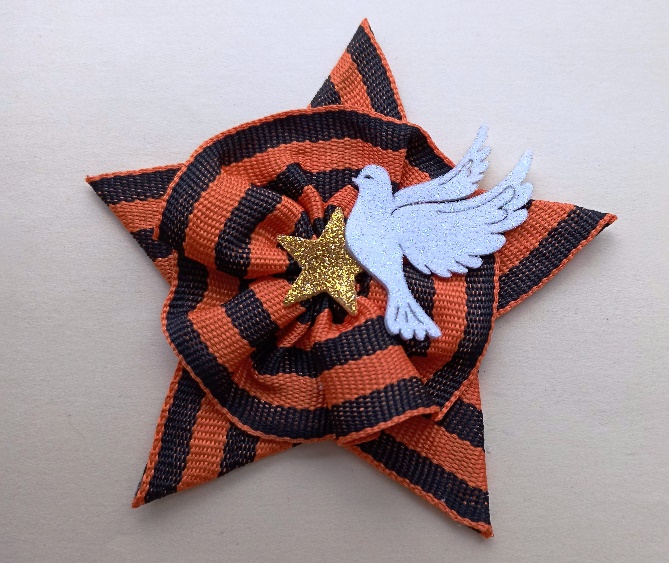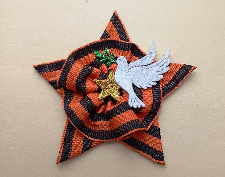 Сегодня я предлагаю вам изготовить для себя или своих родных брошь в виде звезды из георгиевской ленты и голубем мира с веточкой, чтобы 9 мая 2025 года украсить свою одежду в честь Великой Победы!