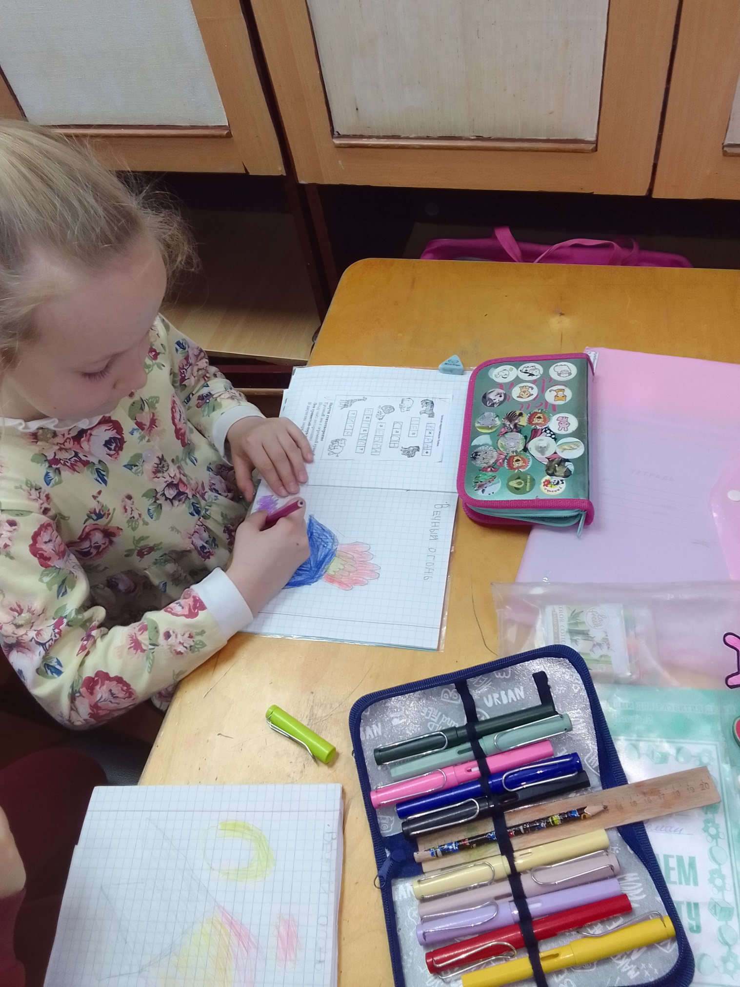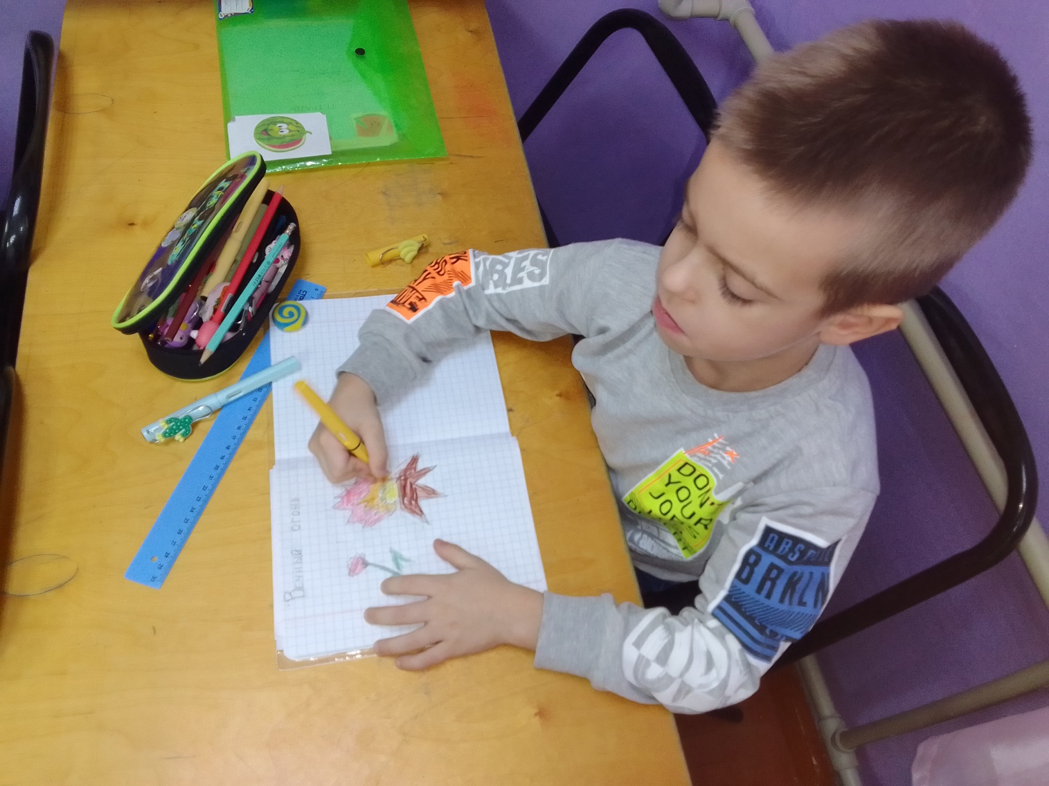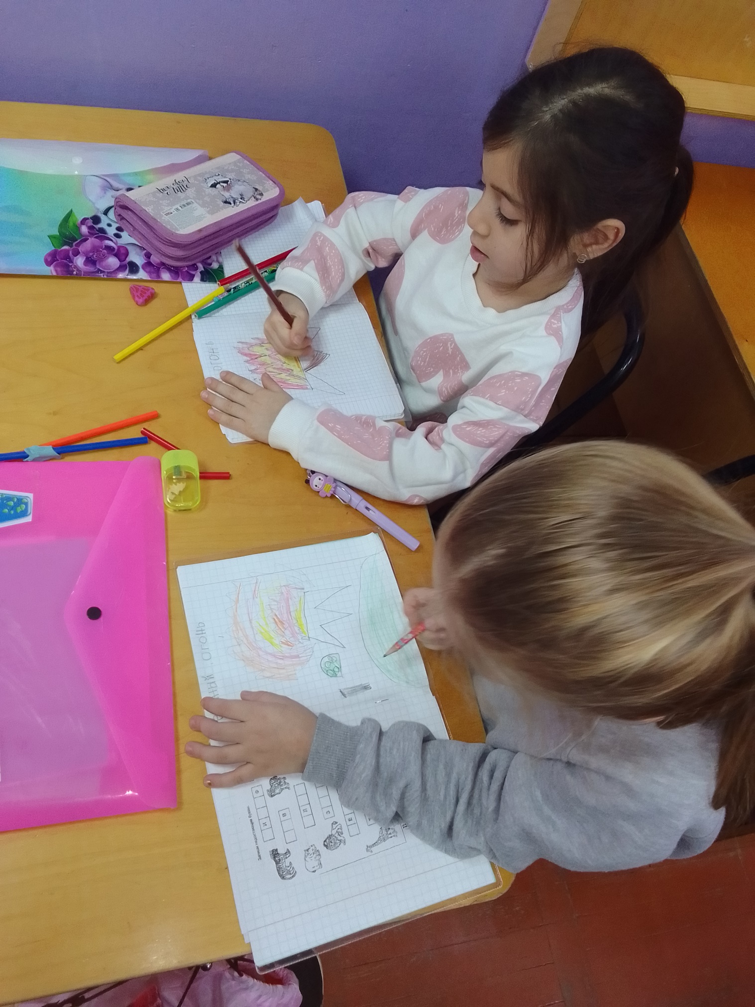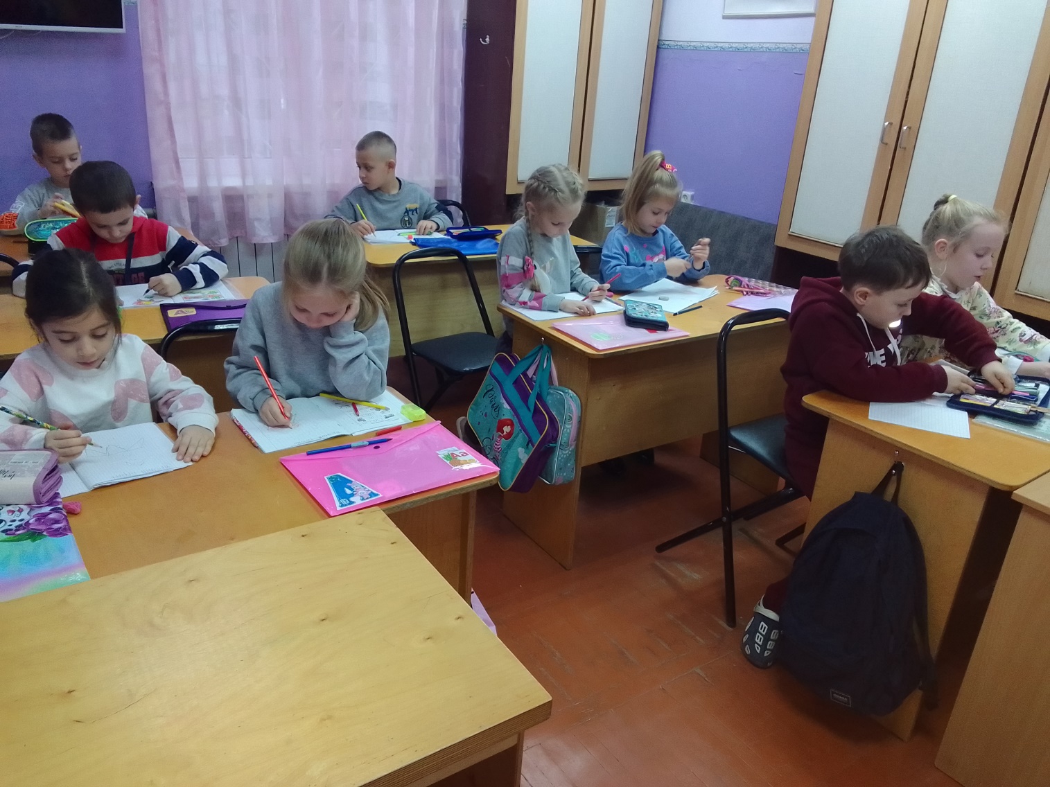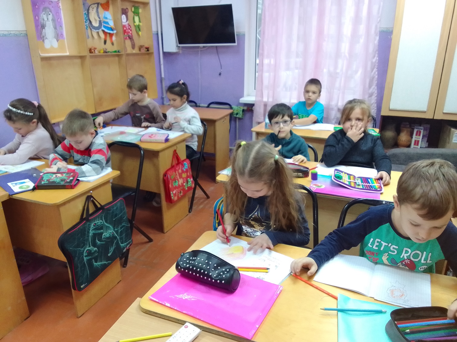 Дети работают самостоятельно, каждый выполняет работу в своих рабочих тетрадях. Педагог наблюдает за правильностью выполнения работы, оказывает индивидуальную помощь.