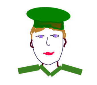 Используя кисточку (Brush), начертите круглое лицо, затем добавьте глаза, брови, нос и улыбающийся рот. Обведите контуры лица карандашом толщиной около 3 пикселей. Глаза сделайте слегка уставшими, выразив мудрость и пережитое ветераном.