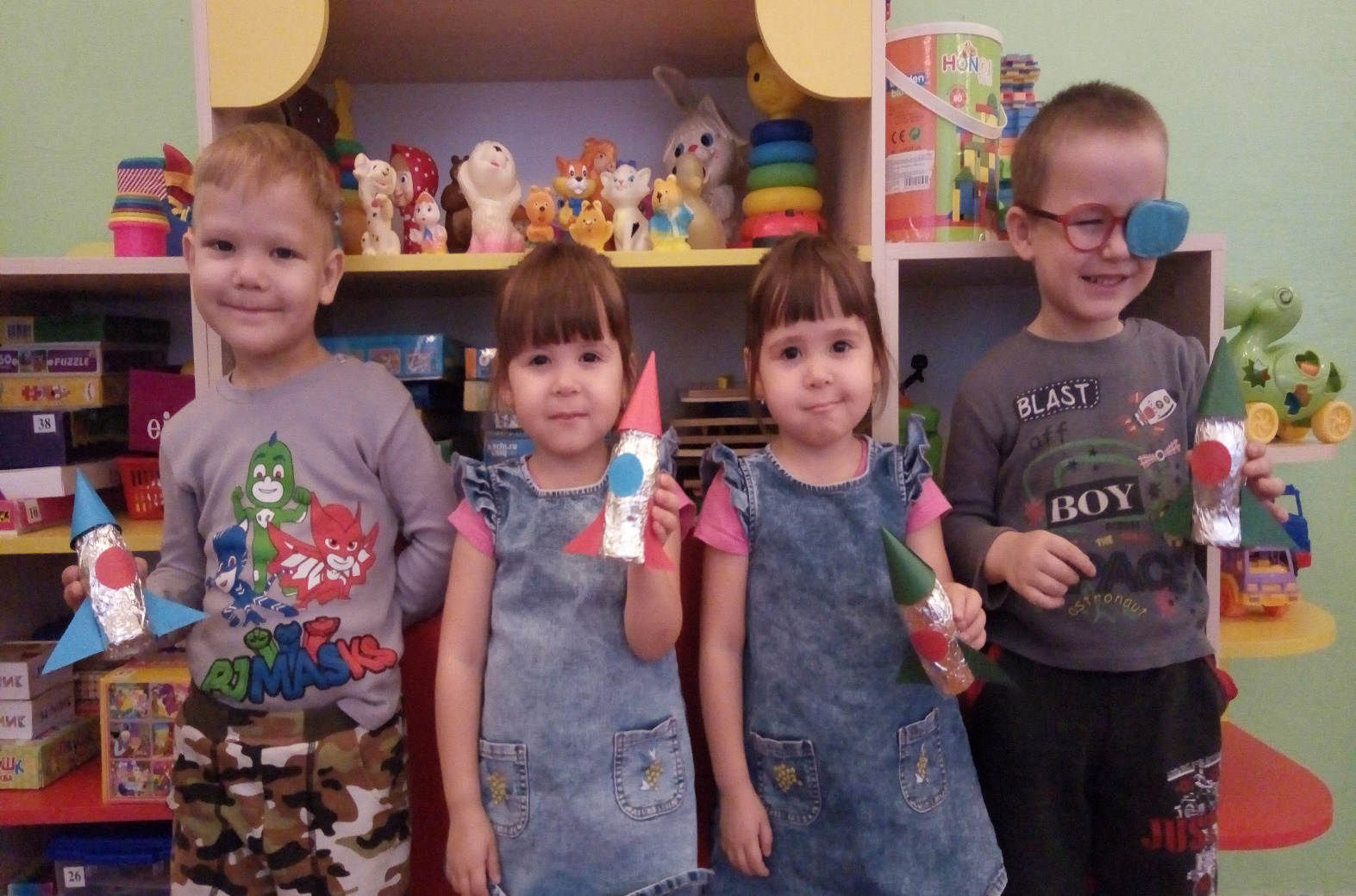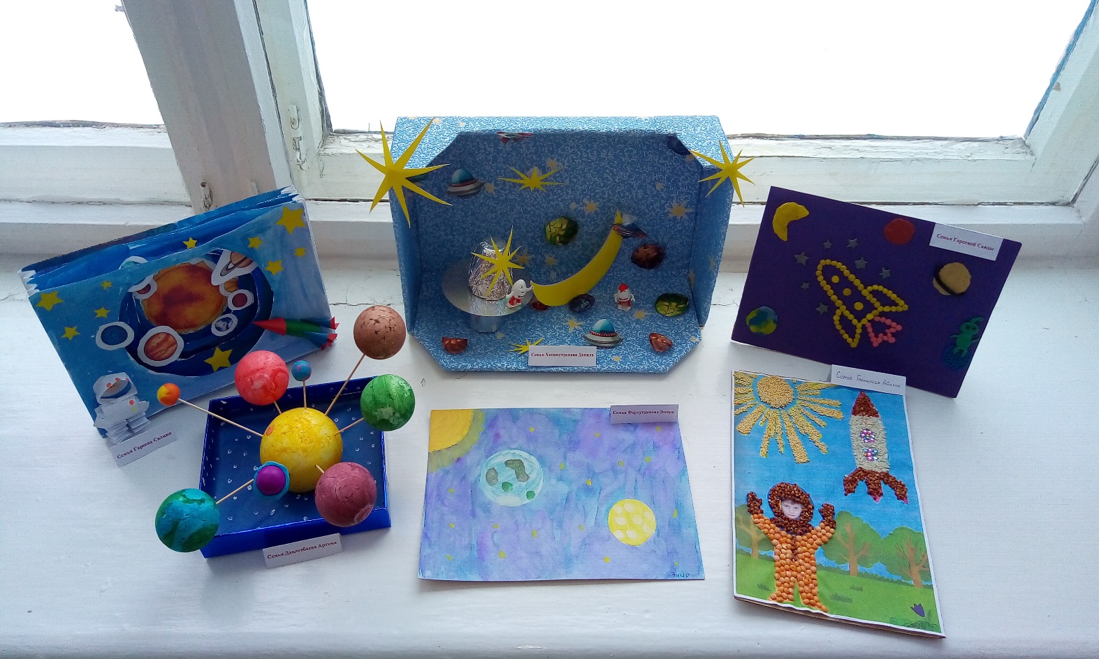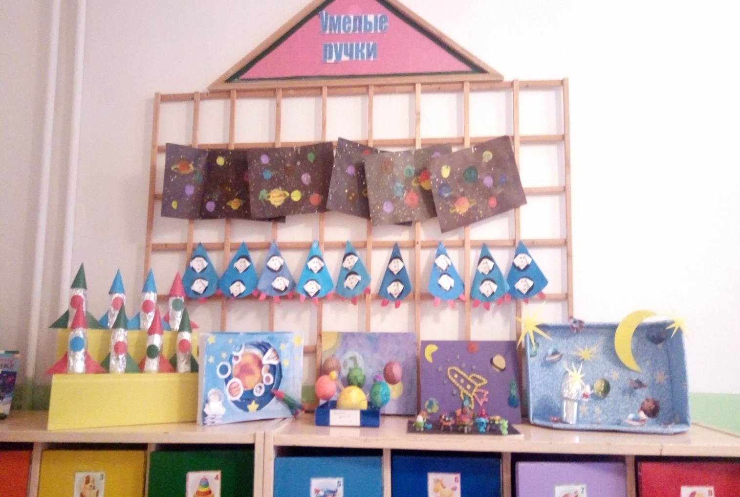 Выставка совместного творчества детей и родителей «По космическим дорожкам»; проведение викторины «Знатоки космоса»