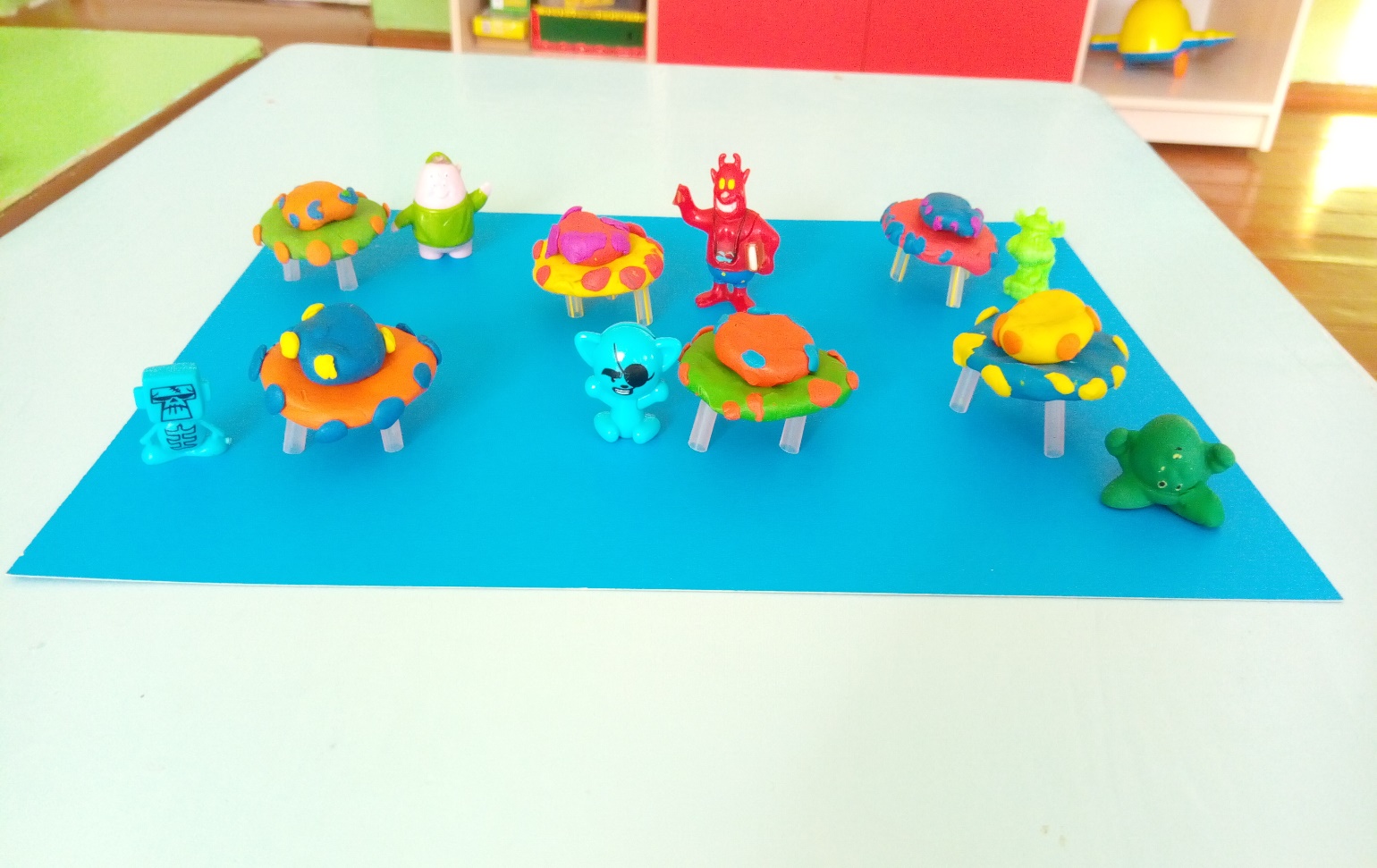 4.Лепка из пластилина «Летающие тарелки».Цель: учить лепить тарелку, развивать творческие способности, глазомер, мелкую моторику пальцев рук.