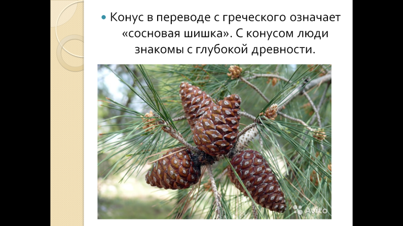 -Эта фигура называется конус. Давайте узнаем подробнее об этой фигуре. Коля, прочитай информацию со слайда