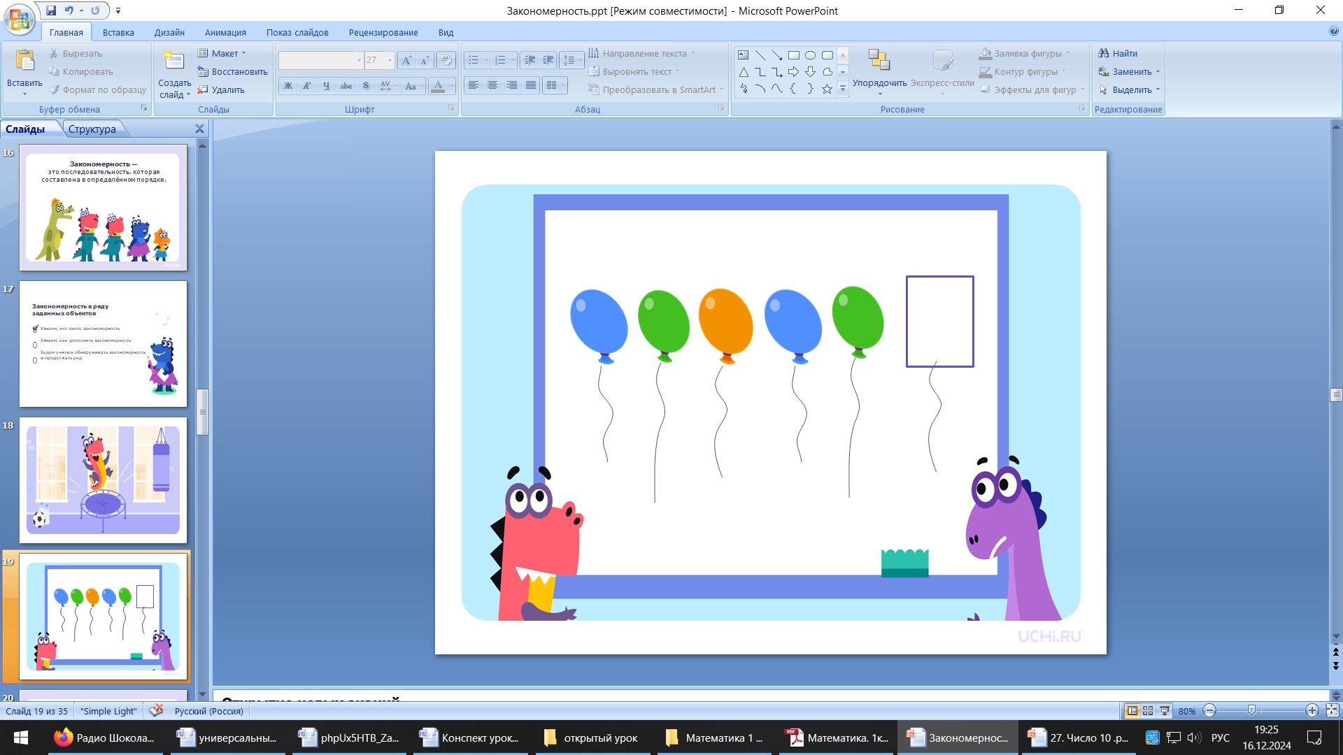 - Какой шарик должен быть в пустом окошке? -Для того чтобы продолжить закономерность нужно: определить правило, по которому составлена закономерность; используя это правило, дополнить ряд закономерности | - Оранжевый |
