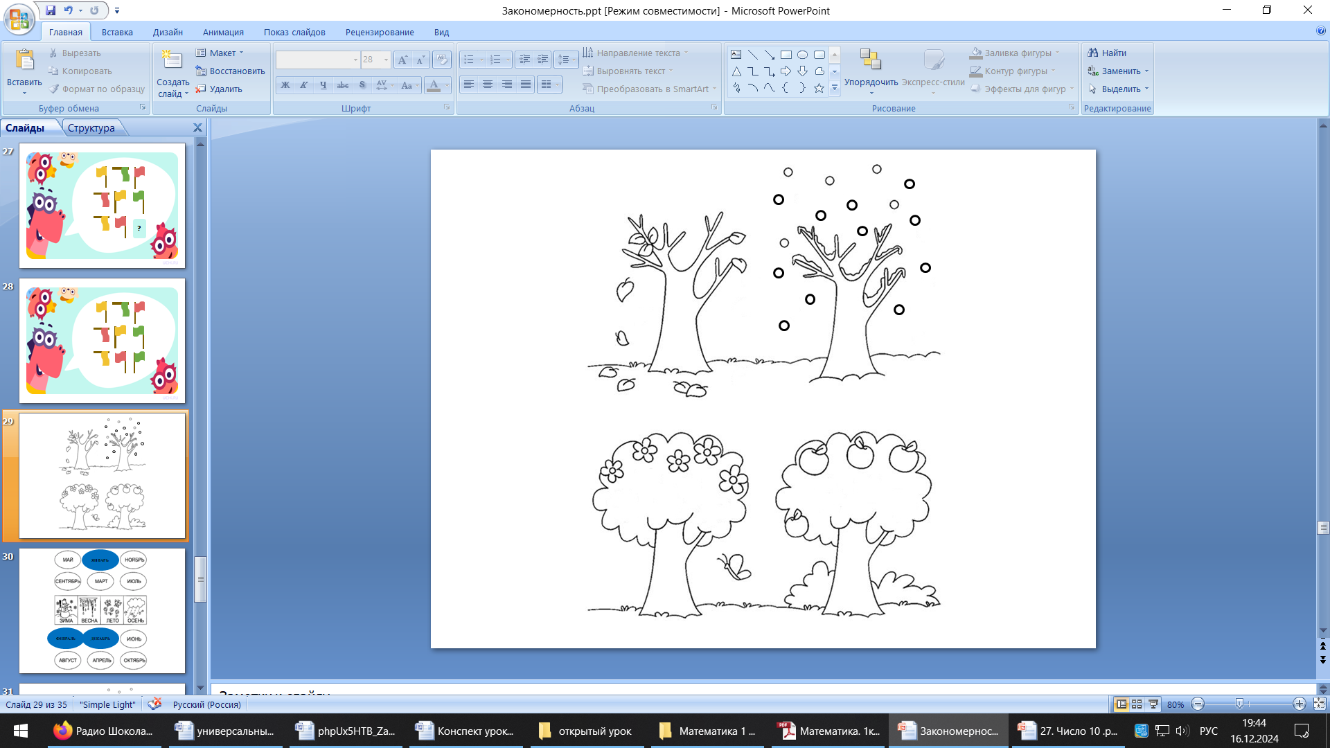 | - О смене времён года. - Да. Времена года сменяют одно – другое постоянно. Значит – это закономерность.
