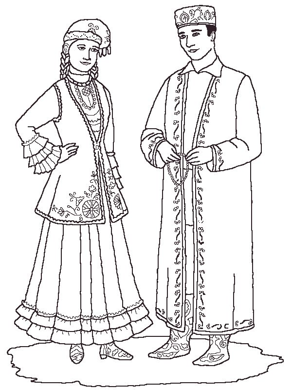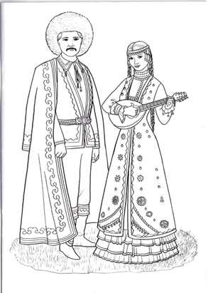ориентируется с помощью схем в видах народного костюма, элементах народного орнамента национальных костюмов;