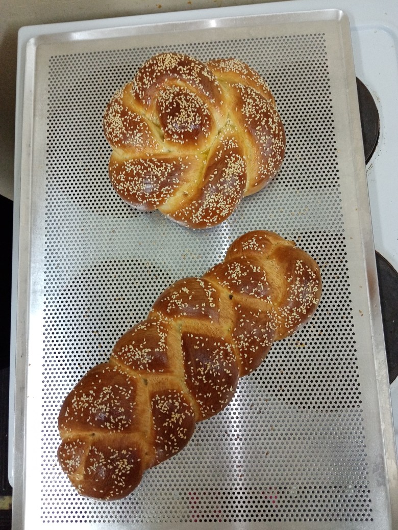 Халы. Это сплетенные из 3 — 6 жгутов изделия продолговатой формы с ясно выраженными витками. Перед выпечкой изделия смазывают яйцом, благодаря чему они приобретают блестящую верхнюю корку. В рецептуру хал кроме муки 1-го или высшего сортов, дрожжей и соли входит