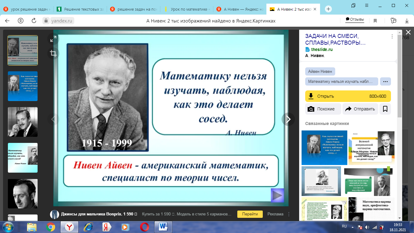 1 задание. Как вы понимаете данное высказывание учёного- математика. (ребята высказывают свои мнения) За самый интересный ответ получают карточку с числом.(1000, 2000, 500).