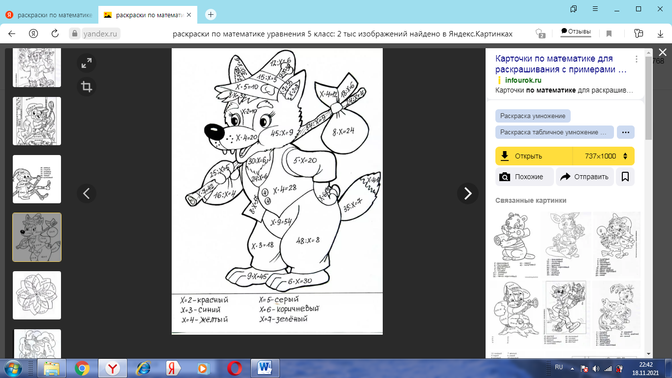 Домашнее задание. Решить уравнения( раскраска)