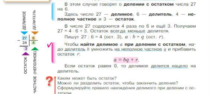 6·5=30 6·4=24 Значит, 27:6=4 (остаток 27-24=3) 2 24 4 3