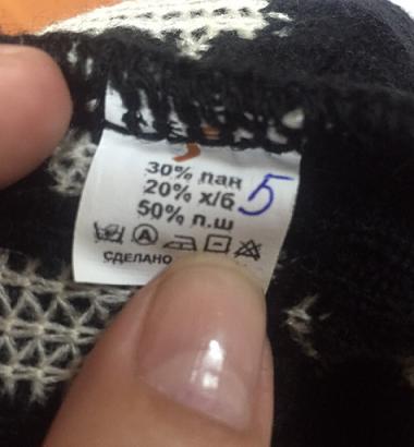 Наташе подарили на день рождения красивый джемпер. Она с радостью надела его в школу, но на переменке в столовой ее случайно облили чаем. Девочка очень расстроилась. После школы Наташа решила постирать изделие до прихода мамы с работы. Так как стиральной машиной она не умела пользоваться, то постирала руками и очень хорошо прополоскала. Отжав джемпер, девочка повесила его на батарею, чтобы быстрее высушить. Когда мама пришла с работы, Наташа ей все рассказала и объявила, что уже постирала изделие. Мама спросила дочь, соблюдала ли она правила по уходу за джемпером и показала ей бирку, которую вы видите выше. Они вместе сняли с батареи изделие, которое перекосилась и было очень мятым.