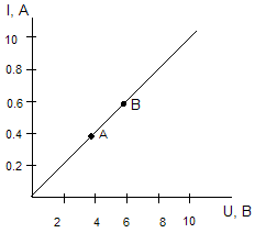 Какому значению силы тока и напряжения соответствует точка В?