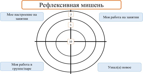 Рассказывают. Анализируютсвоюработуназанятии, заполняют рефлексивную мишень.