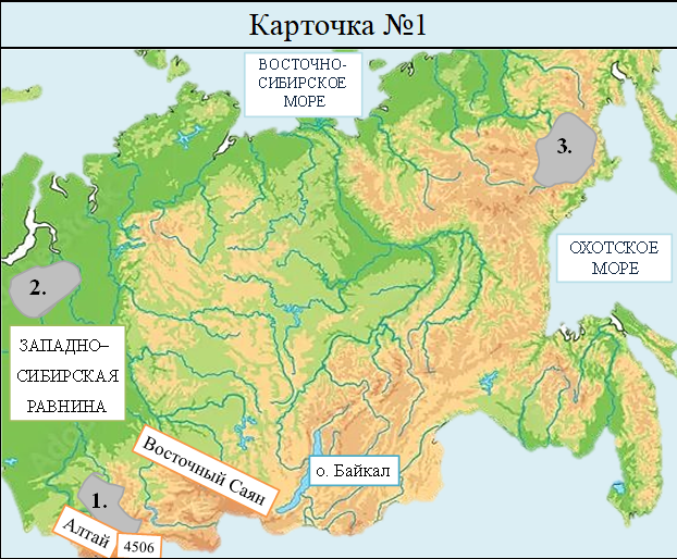 Выполняют самопроверку по эталону на экране. Принимают участие в викторине. - на востоке нашей страны находится Охотское море. - самое глубокое озеро в мире – Байкал. - горы Алтая имеют высоту – 4506 м. - Алтайский заповедник расположен в 4 природных зонах: горная тайга, горные луга, снежная полоса и лесная зона. Слушают задание учителя. Вспоминают правила работы с оборудованием. Слушают инструкцию учителя. Выполняют задание.
