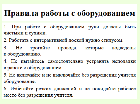 - Какие правила работы с оборудованием вы знаете? - Верно, помните об этих правилах, при работе на интерактивной панели пользуйтесь стилусом, будьте аккуратны. СЛАЙД 7