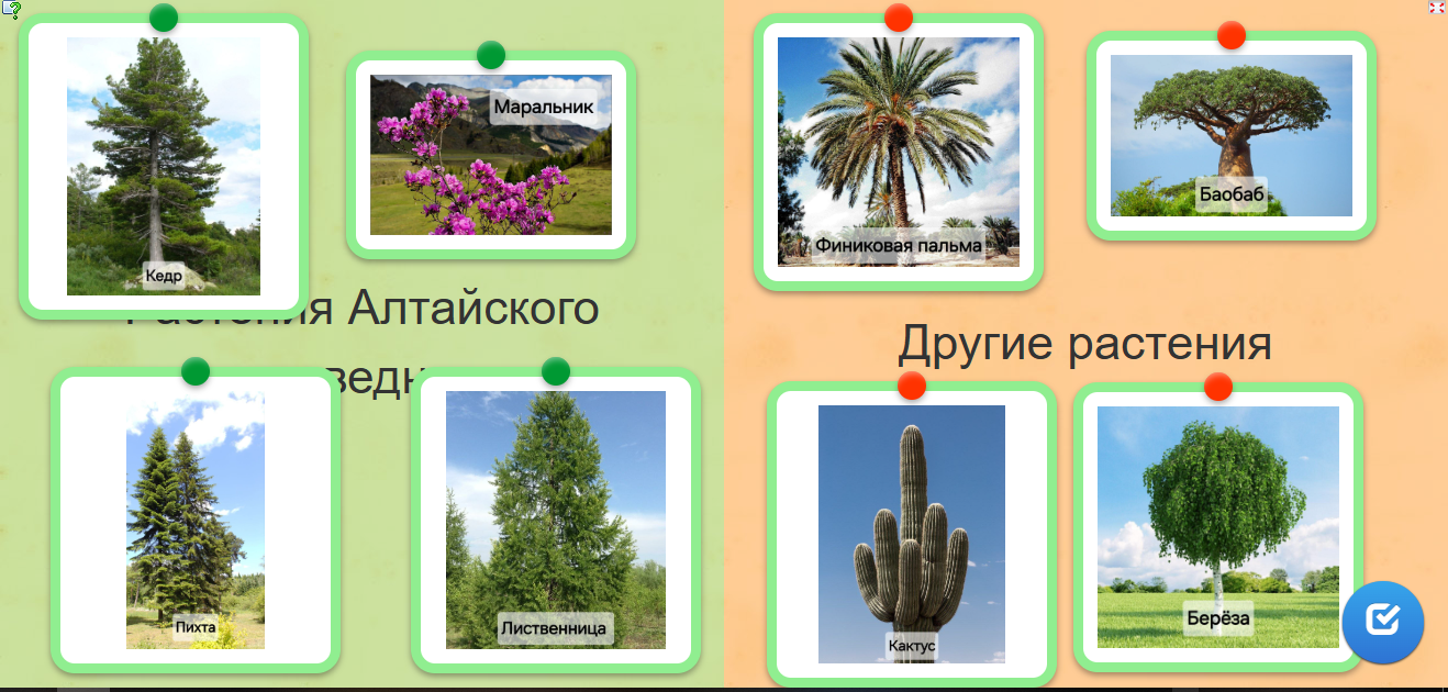 - Выполните самопроверку по эталону на слайде. - Молодцы, вы справились с этим заданием. - Поучаствуем в викторине. Я буду задавать вопросы командам по очереди, если первая команда не сможет ответить на вопрос, то право ответить переходит второй команде. - Какое море находится на востоке нашей страны? - Какое озеро самое глубокое в мире? - Какую высоту имеют горы Алтая? - В каких природных зонах расположен Алтайский заповедник? - Предлагаю вам познакомиться с природой заповедника. Для этого выполним задание на платформе LearningApps. (https://learningapps.org/watch?v=pe4jbhi7n25) - Первая команда будет работать на интерактивной панели, вторая команда на планшете. СЛАЙД 6