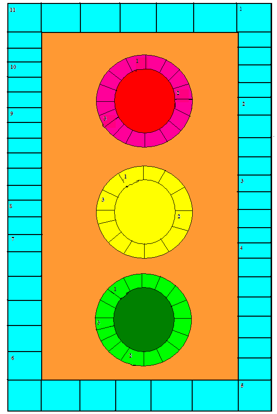 Ведущий 1: Ребята, давайте еще раз повторим, что обозначают сигналы светофора? Красный? (Запрещает движение.) Желтый? (Запрещает движение и предупреждает о скорой смене сигналов светофора.) Зеленый? (Разрешает движение.)