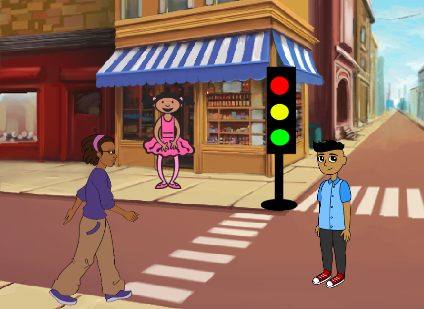 - Скрипт: Нажимая на улицу, появляются советы ("ходите только по тротуару", "переводите дорогу на зеленый свет").
