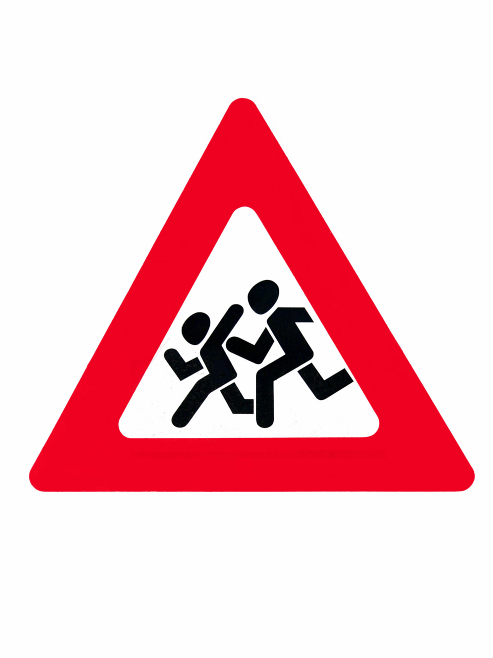 Команде выдают знак дорожного движения, разбитый на фрагменты. Команда должна на время собрать знак и дать название этому знаку