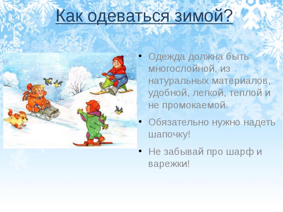 1 парта читает памятку-Как нужно одеваться,когда собираешься на улицу.