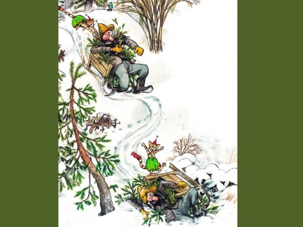 Финдус приносит санки.