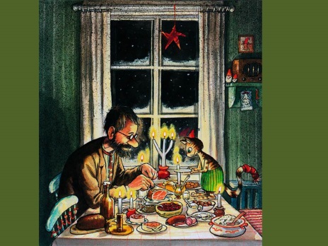 Слайд1. Ведущий: Добрый день, ребята! Сегодня мы с вами отправимся в удивительное путешествие в мир книги Свена Нурдквиста «Рождество в домике Петсона». Это история о добром старичке Петсоне и его верном коте Финдусе, которые готовятся к самому волшебному празднику – Рождеству.