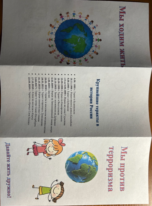 17.09.2025 Мы против терроризма. Давайте жить дружно! Принять участие в этом конкурсе Описание конкурса Список всех конкурсов Двоеглазова Наталья Сергеевна МАОУ СОШ№1 имени Героя Советского Союза И.В. Королькова Конкурсная работа Свидетельство участника экспертного совета жюри Свидетельство можно заказать сразу, как Вы оставите не менее 3 объективных комментариев в этом разделе сайта. Узнать подробнее Внимание терроризм! Значение Дня памяти жертв Беслана в воспитательной работе У вас недостаточно прав для добавления комментариев.Чтобы оставлять комментарии, вам необходимо авторизоваться на сайте. Если у вас еще нет учетной записи на нашем сайте, предлагаем зарегистрироваться. Это займет не более 5 минут.