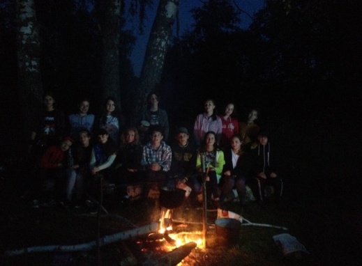 адо сказать, что во всех мероприятиях нам помогали родители. Мне с ними тоже очень повезло: любую нашу задумку они всегда поддерживали, во всём помогали, сопровождали, показывали пример. Им я очень благодарна. Одобрили они и идею с ночным походом: помогли с палатками, спальными мешками, необходимым инвентарем, продуктами. Мы часто впоследствии вспоминали, как все вместе вытаскивали из оврага огромную березу, чтобы было, на чём сидеть, искали дрова для костра на всю ночь, ходили к деревенскому колодцу за водой, вместе готовили обед, ужин и завтрак. Часто вспоминаем мы рассказы и песни под гитару у ночного костра и попытку выдернуть приехавшую проведать нас машину родителей и застрявшую в размытой дождем колее.