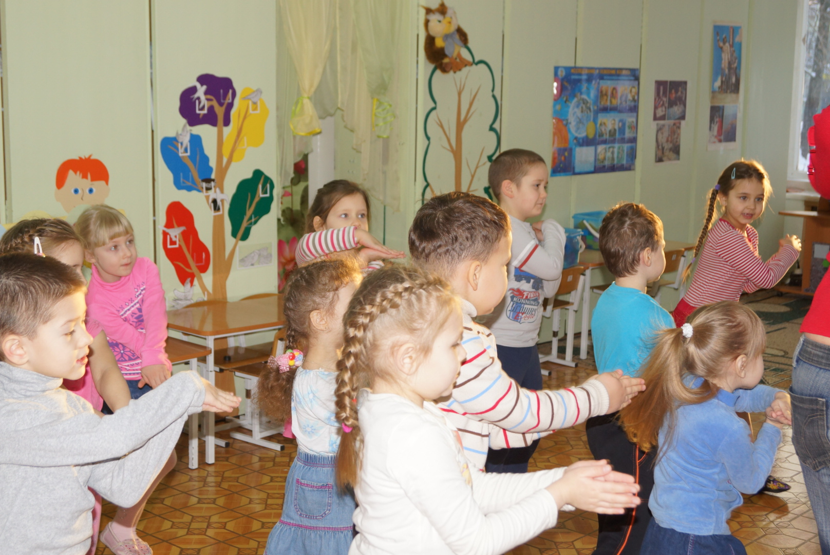 Я попрошу выйти ко мне 5 человек. (Выходят на середину зала). Ребята, вы должны поздороваться друг с другом жестами, но эти жесты не должны повторятся. И так начали! (Дети жестами здороваются друг с другом). Молодцы! Полетели на следующую планету? (Дети соглашаются).