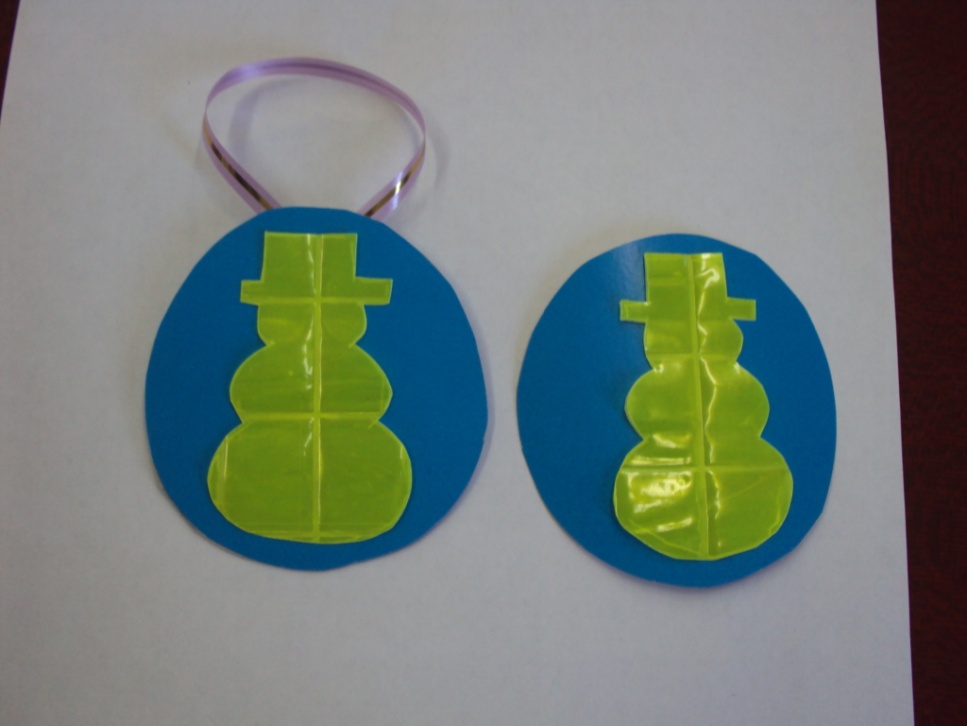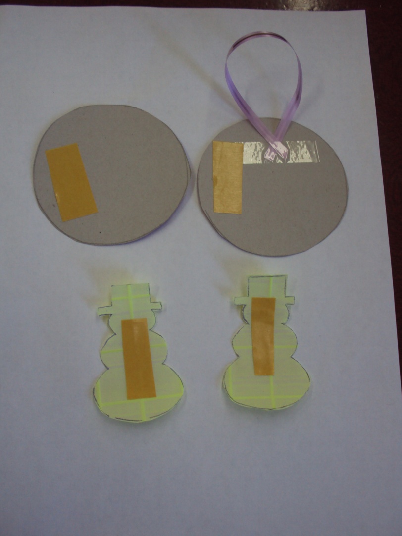 Шаг 4. Приклейти на картонные основы светоотражающие фигурки, предварительно убрав верхний слой двухстроннего скотча.
