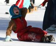 разрешайте ребёнку кататься только на средстве для катания - ледянке, ватрушке, снегокате, но не на ногах или на корточках.