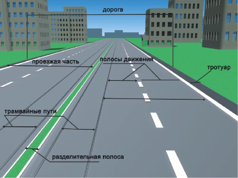 средств и пешеходов. Она включает в себя проезжую часть, трамвайные пути, тротуары, обочины.