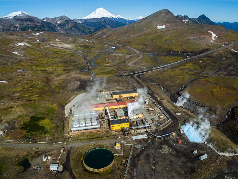 Полученный таким способом природный пар направляется в турбины, соединенные с электрогенераторами.