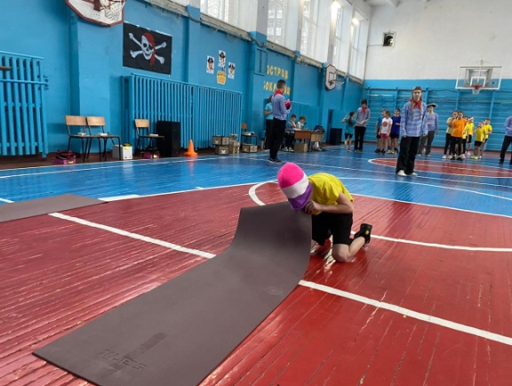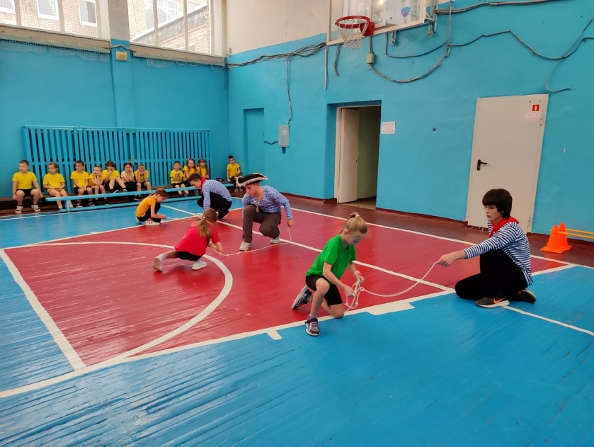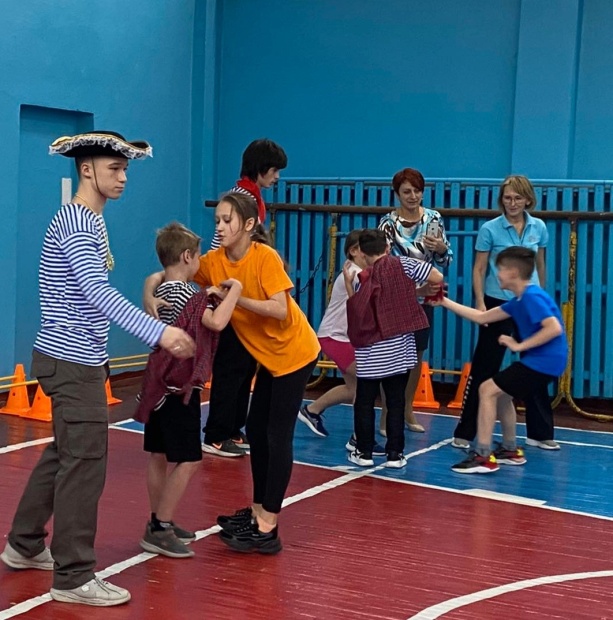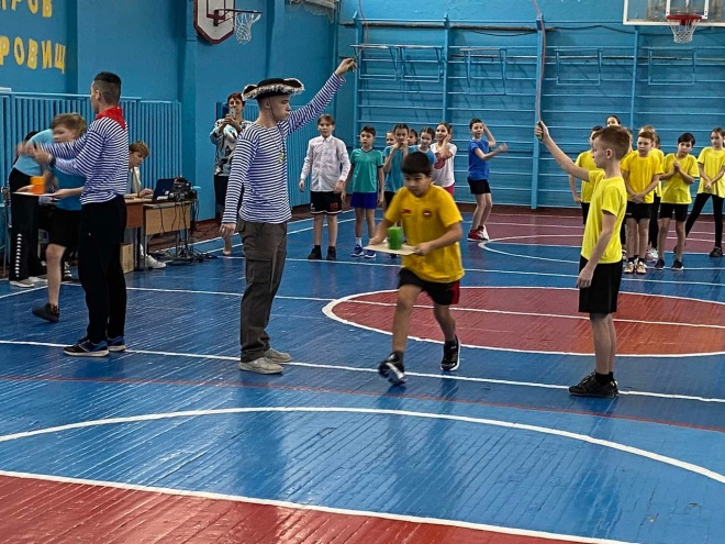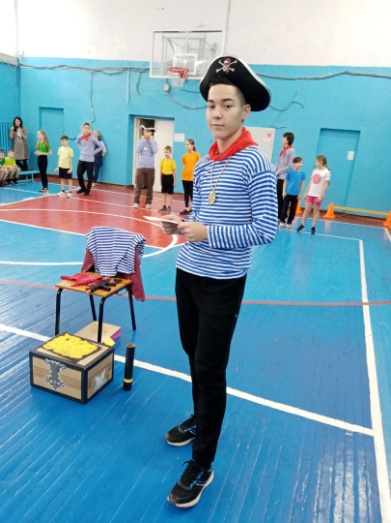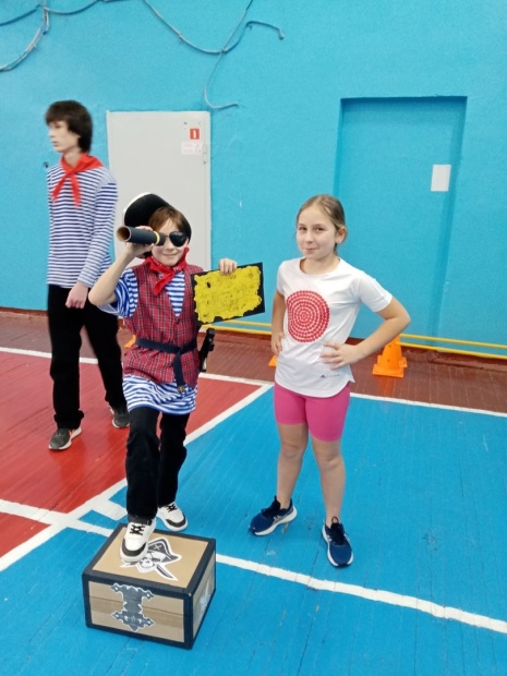 Бег в пиратских атрибутах + с препятствиями + выбрать правильный термин из трех предложенных (части корабля, состав команды)