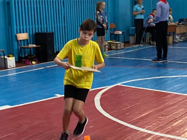 3 и 4 класс – на подносе 2 кубика, пробежать под скакалкой