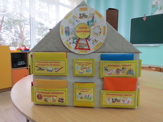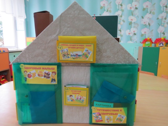 Игровое пособие «Теремок здоровья» представляет собой макет дома с окошками (кармашками), в которых находятся конверты с дидактическими играми и упражнениями. Пособие включает в себя 17 дидактических игр и упражнений, направленных на систематизацию представлений у детей старшего дошкольного возраста о здоровом образе жизни, о правилах здоровьесберегающего поведения.