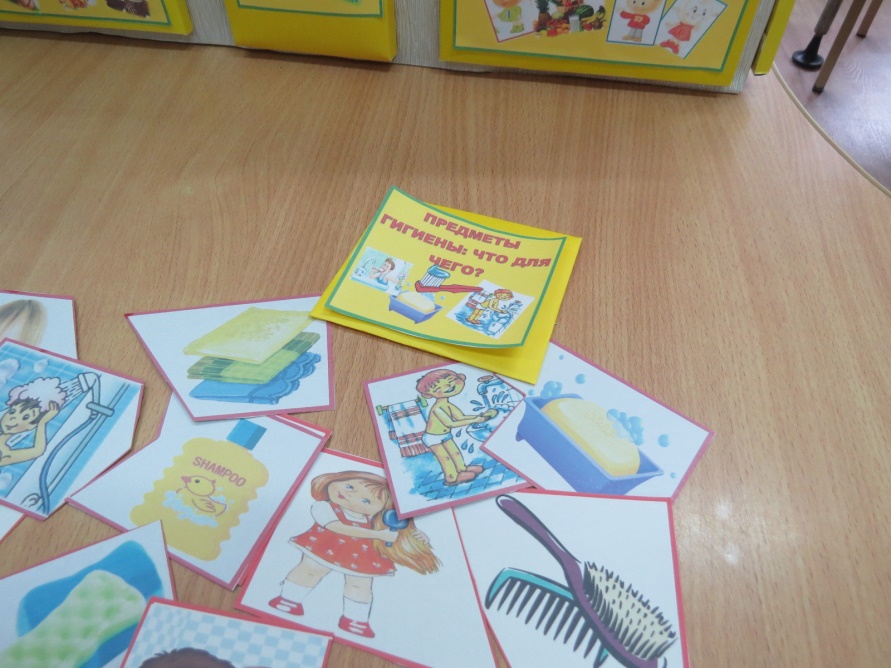Материал: карточки с изображением предметов гигиены и ситуаций, где они используются.