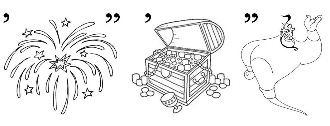сли предмет на рисунке перевернут, его название читают справа налево;если слева от рисунка стоят запятые (одна или несколько), то не читаются первые буквы слова. Если запятые стоят после рисунка, справа от него, – не читаются последние буквы;