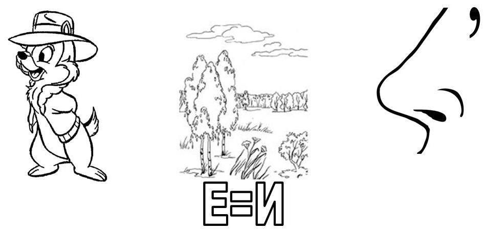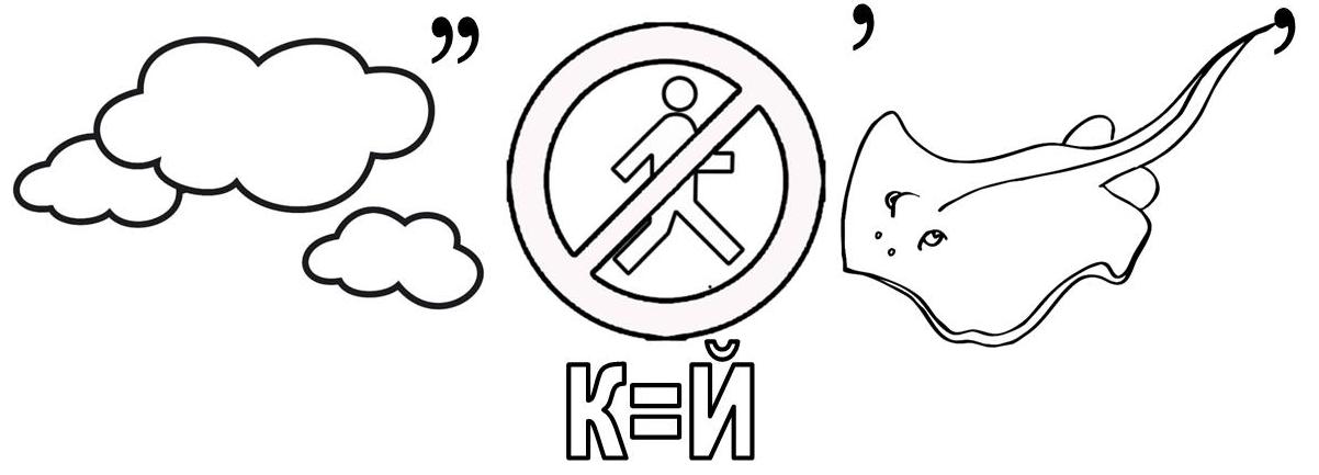 многие части зашифрованных слов обозначают соответствующим расположением букв и рисунков;