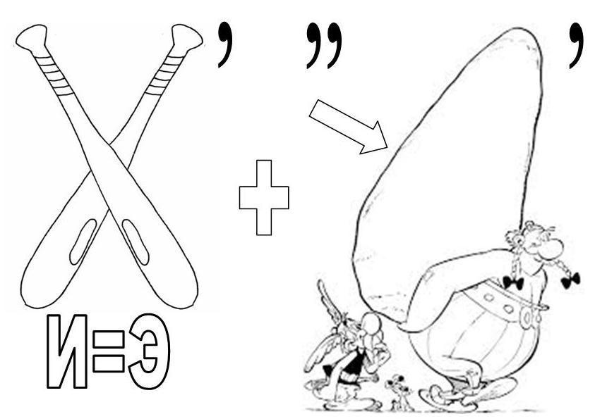 если два каких-либо предмета или две буквы нарисованы одна в другой, то их названия читаются с прибавлением предлога «в»;