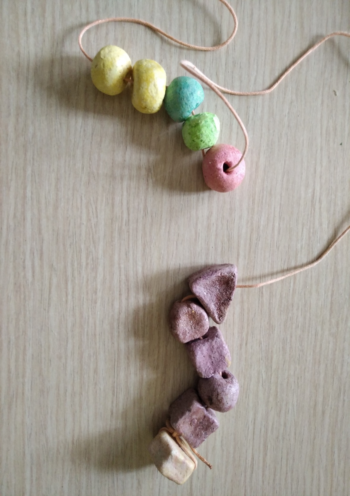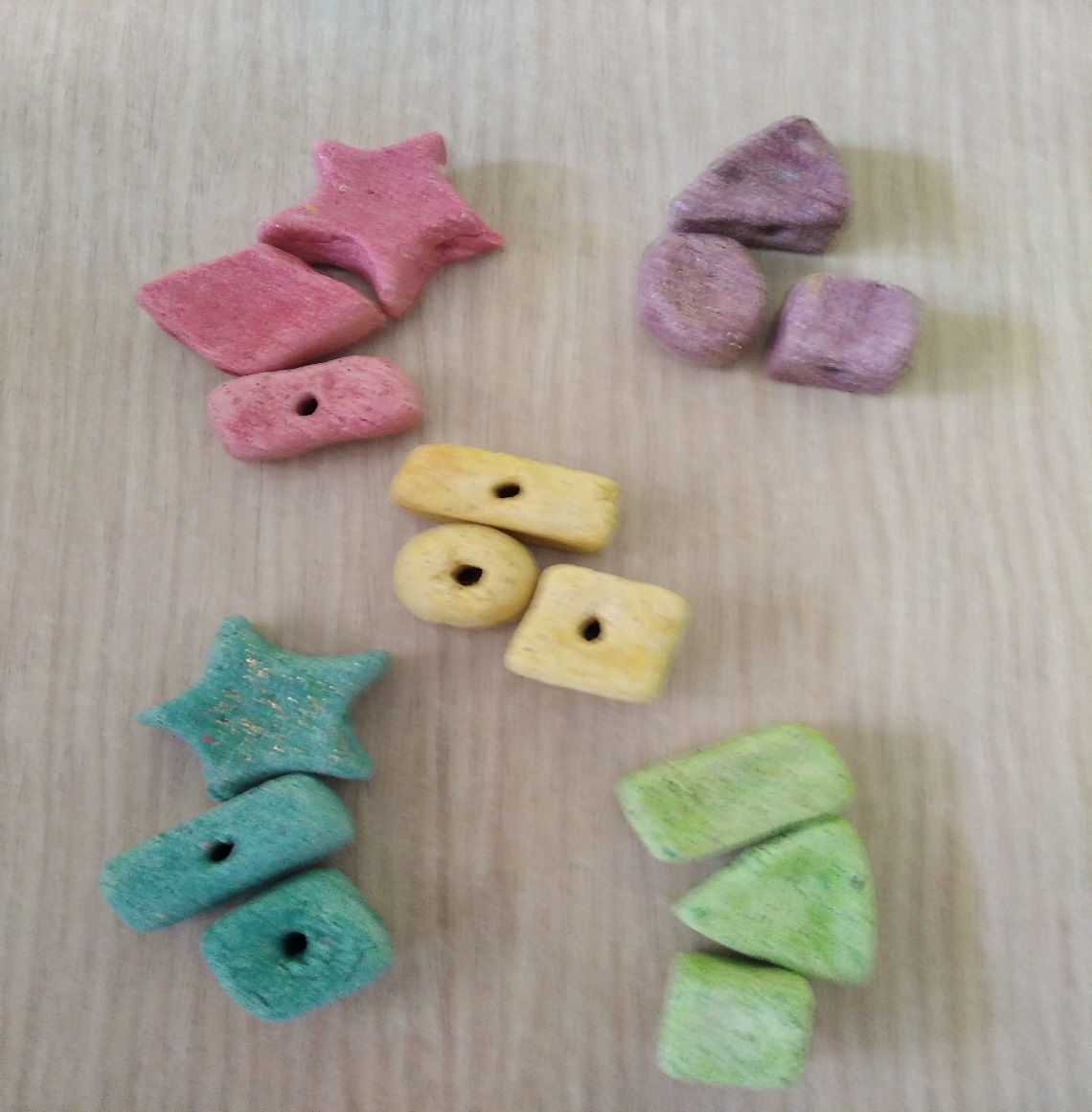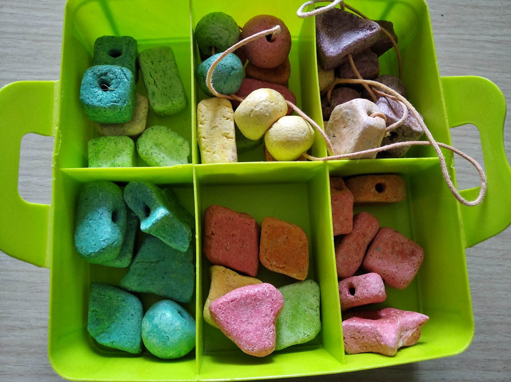 Из соленого теста делаются различные фигурки, после проделываются отверстия и ждем, пока тесто высохнет.