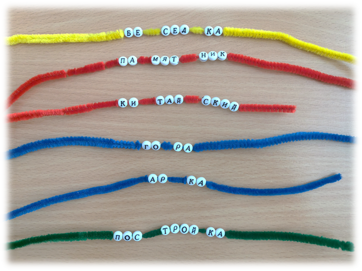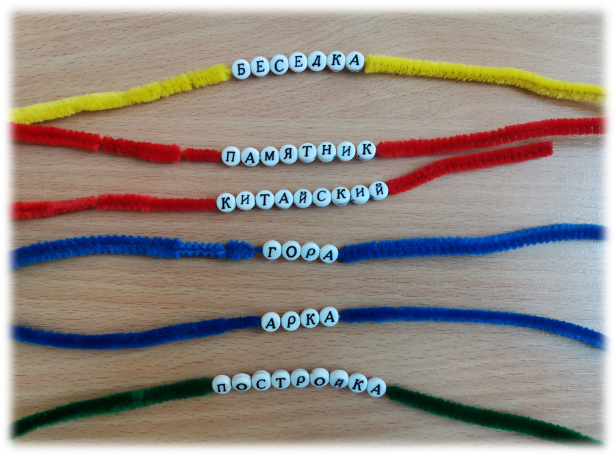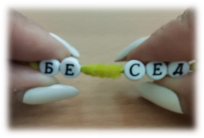 Далее ученики собирают слова, нанизывая бусины-буквы на гибкую нить.